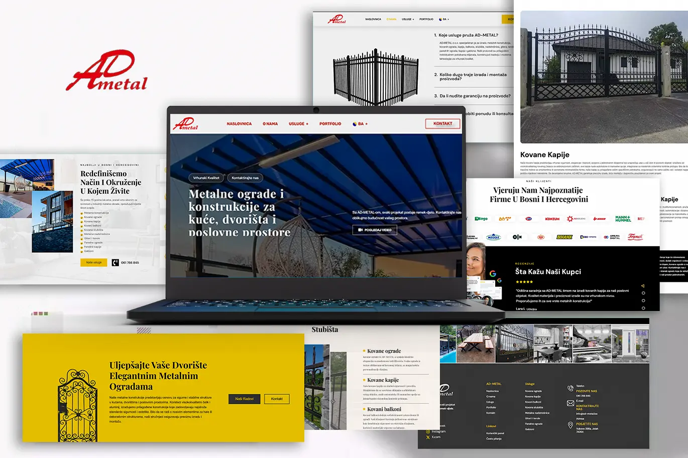 AD-METAL je vodeća kompanija za metalne konstrukcije sa sjedištem u Bosni i Hercegovini, specijalizirana za proizvodnju i ugradnju visokokvalitetnih metalnih ograda, kapija, balkona i drugih konstrukcija za stambene i komercijalne projekte. Sa preko 15 godina iskustva, kompanija je izgradila snažnu reputaciju za izdržljivost, eleganciju i zadovoljstvo kupaca. Međutim, prije ovog projekta, nisu imali namjensku online platformu za predstavljanje svoje vještine, privlačenje novih klijenata ili održavanje konkurentnosti na digitalnom tržištu. Amilma Digital, kreativna digitalna agencija iz Bosne i Hercegovine, dobila je zadatak da dizajnira i razvije prvu službenu web stranicu AD-METAL-a. Koristeći stručnost u web razvoju, grafičkom dizajnu i digitalnim rješenjima, Amilma Digital je isporučila responzivnu, korisnički prilagođenu i vizualno upečatljivu platformu koja ističe stručnost AD-METAL-a, a istovremeno povećava generiranje potencijalnih klijenata i vidljivost brenda.